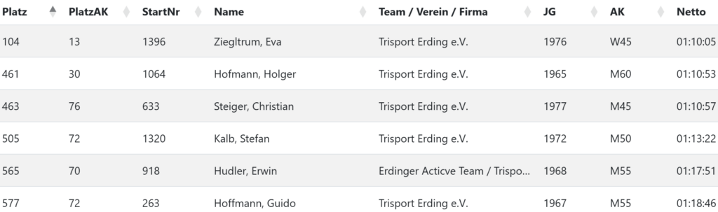 Hier die Ergebnisse unserer Trisportler in der Übersicht: