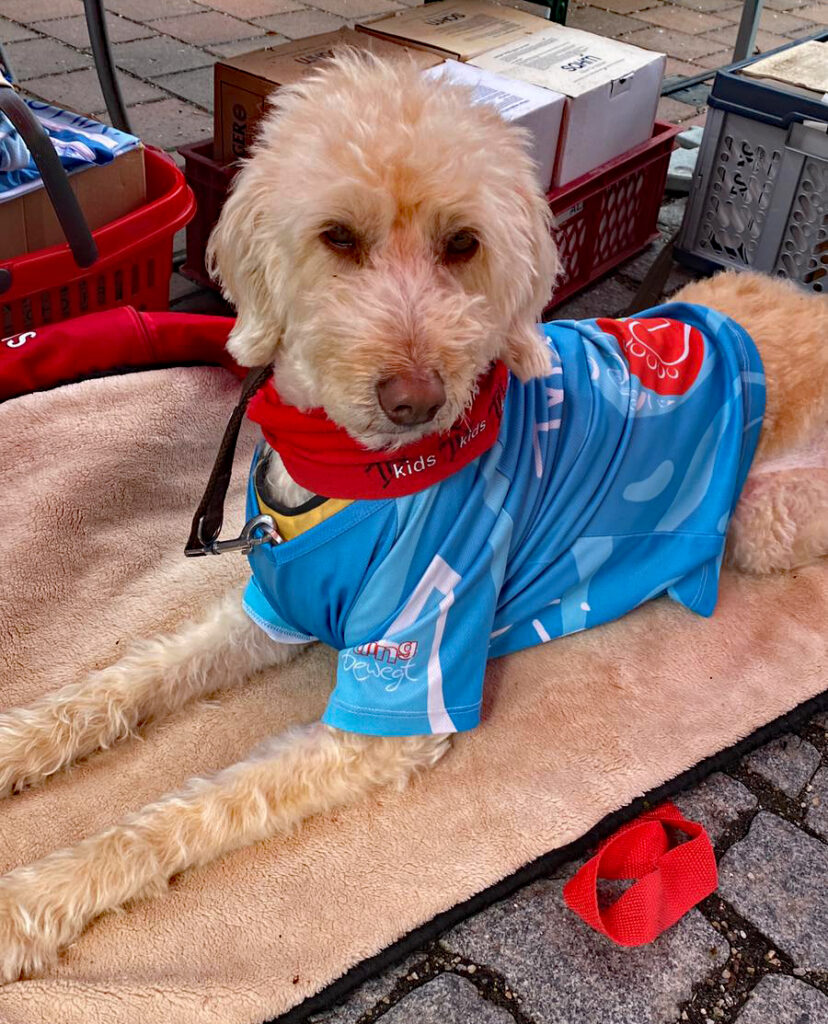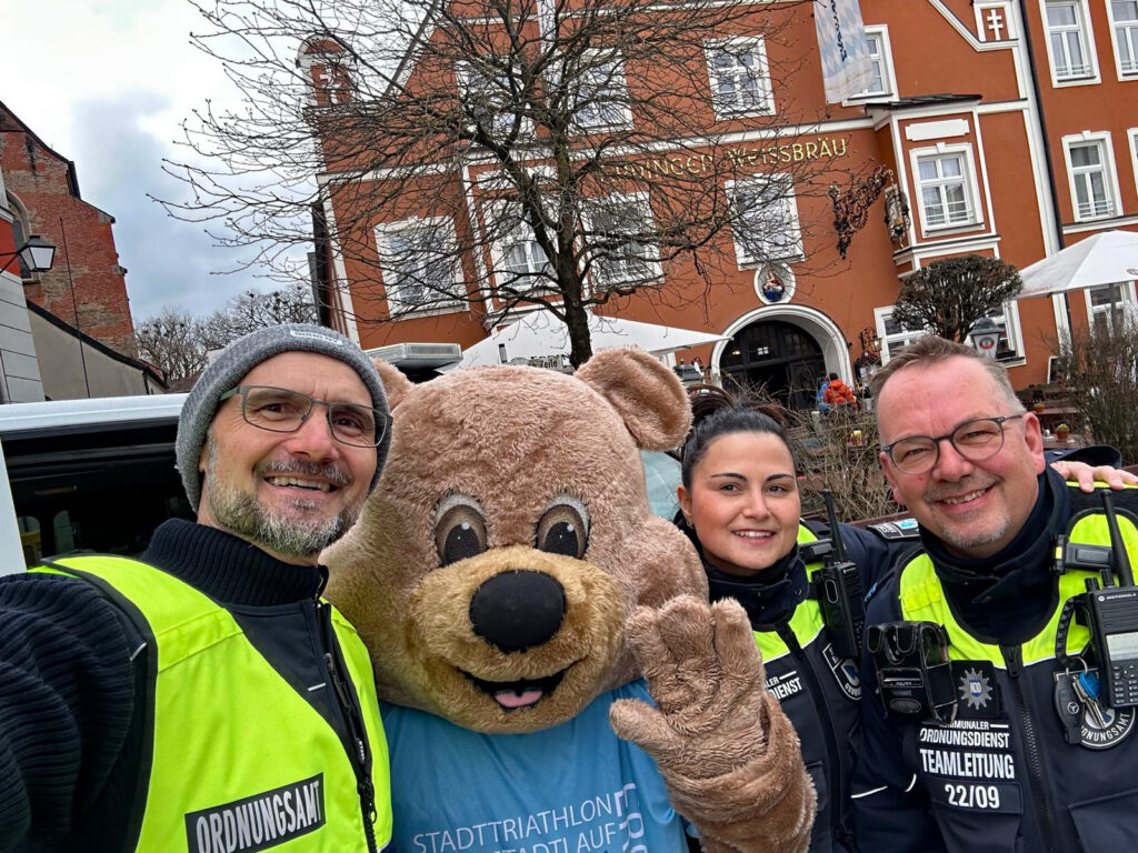 Ein ganz besonderer Gast war ebenfalls am Start: Tri-Bär Eddy, das sympathische Maskottchen des Stadttriathlons, schaute höchstpersönlich vorbei und sorgte mit seinem flauschigen Auftreten und einer Tasche voller kleiner Süßigkeiten vor allem bei den jüngsten Besucherinnen und Besuchern für strahlende Augen – wobei sich auch einige der „großen Kinder“ über die süße Aufmerksamkeit freuten. Fotos mit Eddy? Klar! Davon wurden an diesem Tag reichlich geschossen.